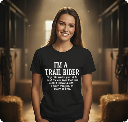 The joke, ”If you want your butt to look smaller, buy a bigger horse,” became our unofficial motto, capturing the perfect mix of self-deprecating humor and devotion that defines our community. It was too good not to put on a t-shirt, and it quickly grew into the brand you see today.